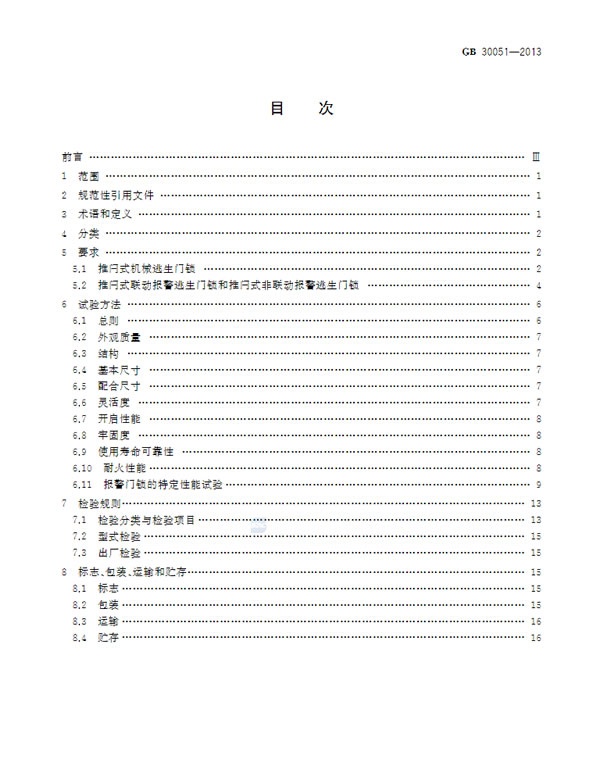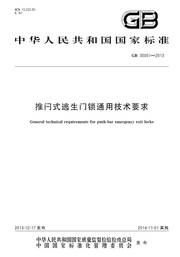 推閂式逃生門鎖通用技術要求GB 30051-2013