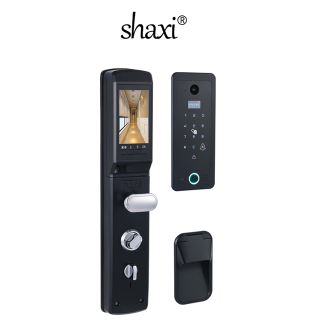 1、鋁合金面板+鋅合金執手,工程款一握開智能鎖