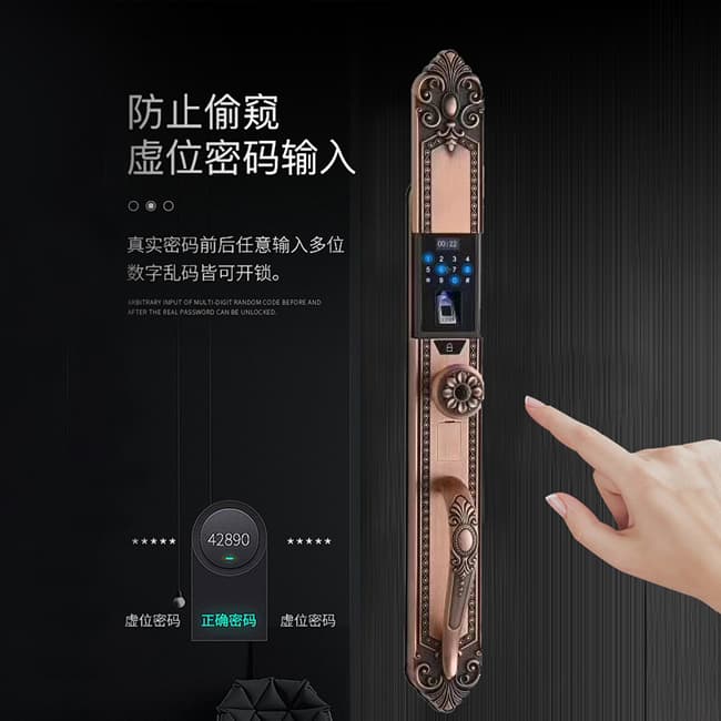 產品優勢:密碼、指紋、刷卡、鑰匙、APP小程序解鎖方式、安全C級鎖芯、智能真人發音、低電壓報警