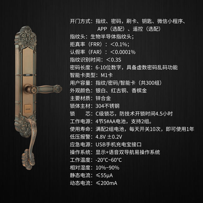 產品優勢:游離式防爆把手設計、實時防盜報警、防窺視虛位密碼、假鎖警示功能、智能低電量提醒