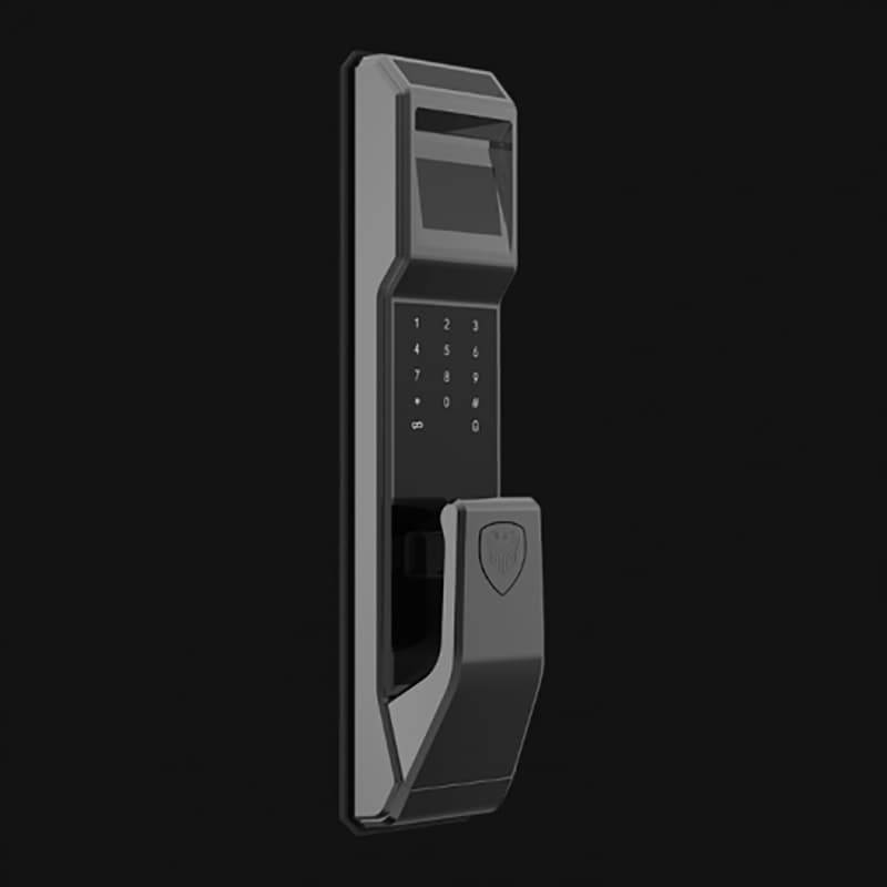 產品優勢:智能防貓眼開啟、活體指紋解鎖、防窺視虛位密碼、C級安全鎖芯