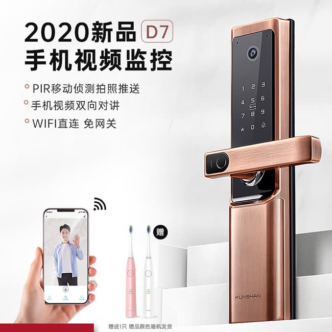 • 琨山通用智能鎖 D7家用防盜門視頻智能鎖 蘇州琨山通用鎖具有限公司