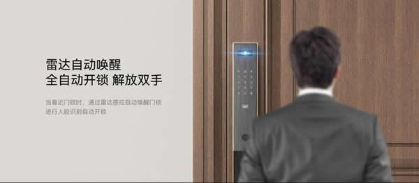 與絕大多數采用紅外感應喚醒裝置的人臉識別智能門鎖不同的是,采用了雷達感應喚醒裝置的T11-Face不會受環境等因素的影響,大大提升了感應精準度,且無需額外加裝感應探頭,使得產品整體更簡潔更美觀。