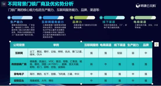 3、不同背景門鎖廠商及優(yōu)劣勢分析