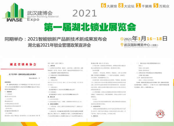 湖北省鎖業協會關于召開第一屆湖北鎖業展覽會的通知 鄂鎖協【2020】1號 各有關單位: 第一屆湖北鎖業展覽會(以下簡稱展覽會)定于2021年3月16日-3月18日在武漢國際博覽中心(武漢市漢陽區
